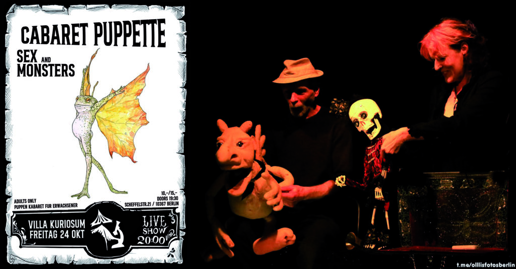 Organisation und Mitspiele von « Cabaret Pupette », ein Kabaret für Erwachsener, der die Kunst von Puppenspiel, Zauber und Freakshow mischt.